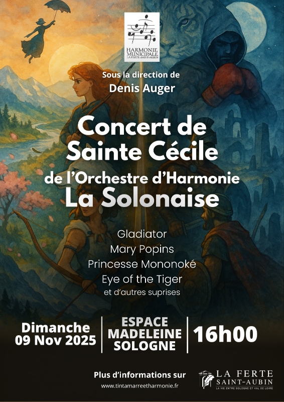 Le concert de Sainte-Cécile aura lieu à l'Espace Madeleine Sologne à 16 heures. Venez nombreux!